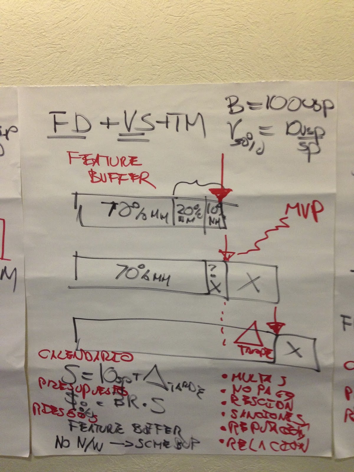 - Fecha fija. Se establece un porcentaje de para los requisitos obligatorios y se deja un buffer para los deseables. Se agrega un o un buffer adicional al proyecto. Riesgos posibles por no terminar en tiempo: multas, reputación de la empresa, rescisión del contrato o no pago.